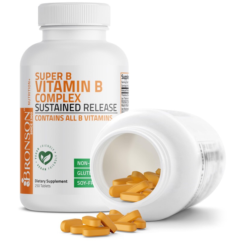 Bronson Bronson Super B Vitamin B Complex Sustained Slow Release (Vitamin B1, B2, B3, B6, B9 - Folic Acid, B12) Contains All B Vitamins 250 Tablets
