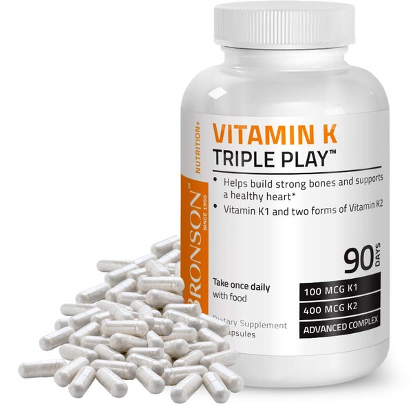 Bronson Vitamin K Triple Play (Vitamin K2 MK7 / Vitamin K2 MK4 / Vitamin K1) Full Spectrum Complex Vitamin K Supplement, 90 Capsules