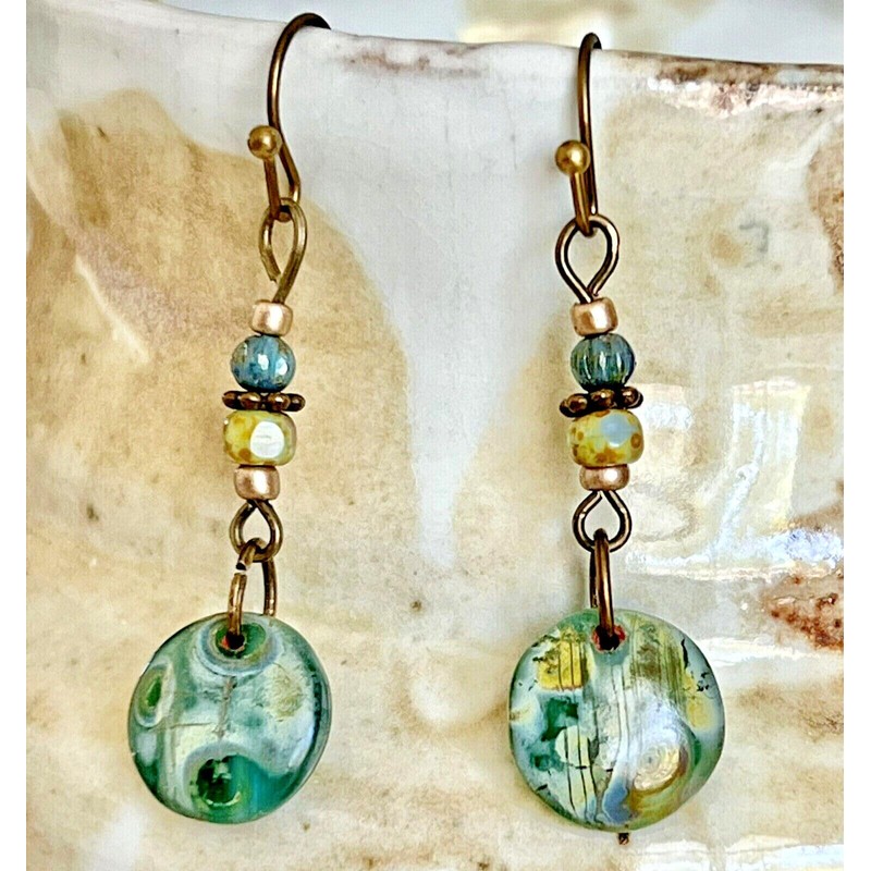 Bronze and Turquoise Czech Dangle Earrings. Jewelry Earrings for Women #3298FE744