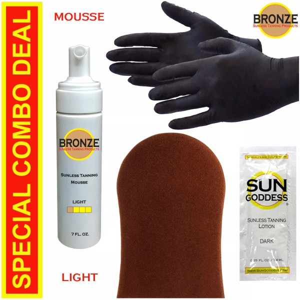 BRONZE - Sunless Self Tanning Foam Mousse - LIGHT - 7 oz + Best Tanner Mitt!