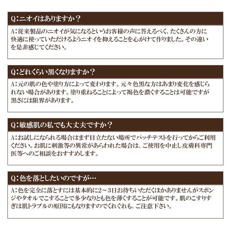 • The main ingredient "Dhydropyacetone" reacts to the surface of the skin and turns to wheat. Dihydroxacetone is a ingredient made by sugarcane, sugarcane, and glycerin, and has been confirmed for safety so you can use it with confidence