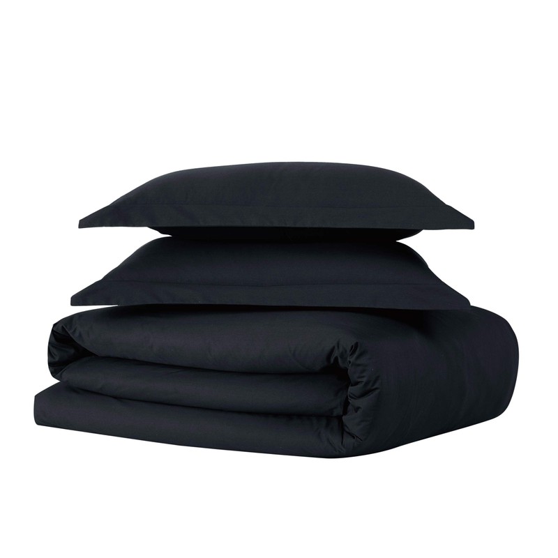 Brooklyn Loom Cotton Percale Duvet Set, Twin XL, Black