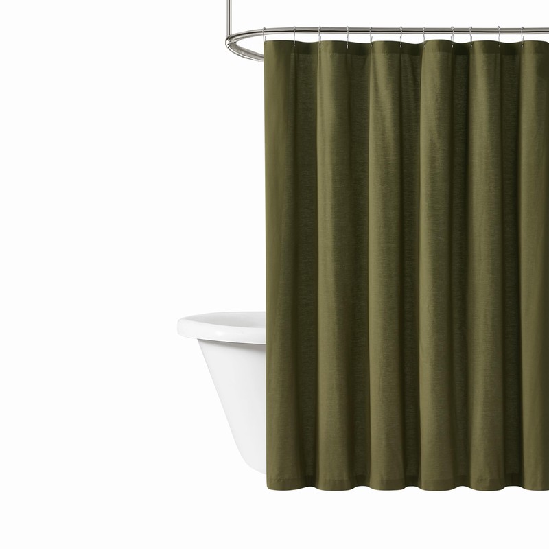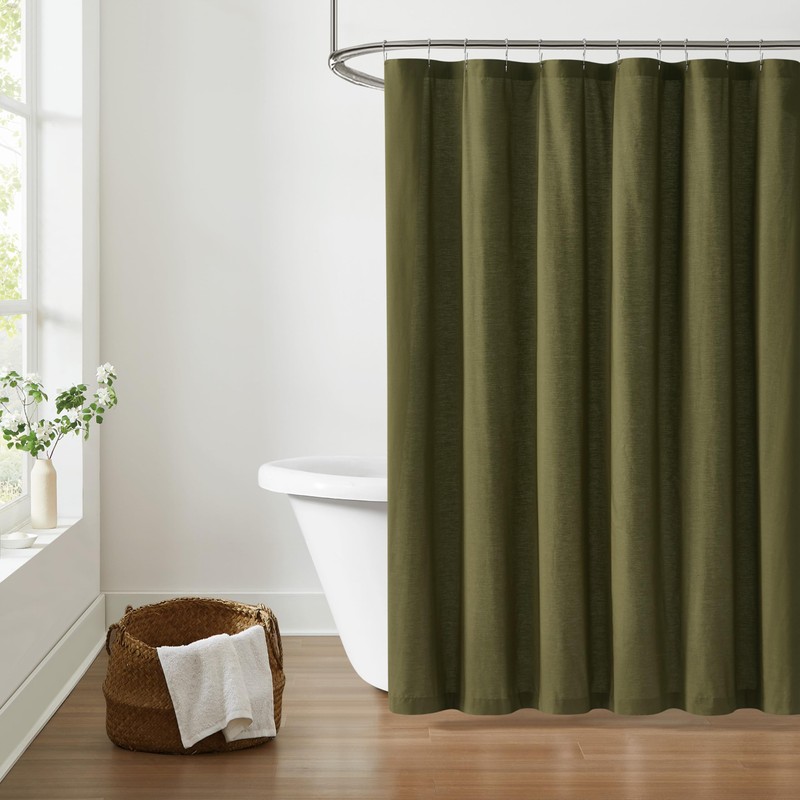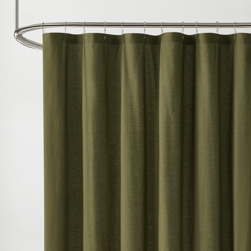 Brooklyn Loom Solid Cotton Percale Olive Green Shower Curtain, Solid Color Themed, Oeko-TEX Certified Confidence
