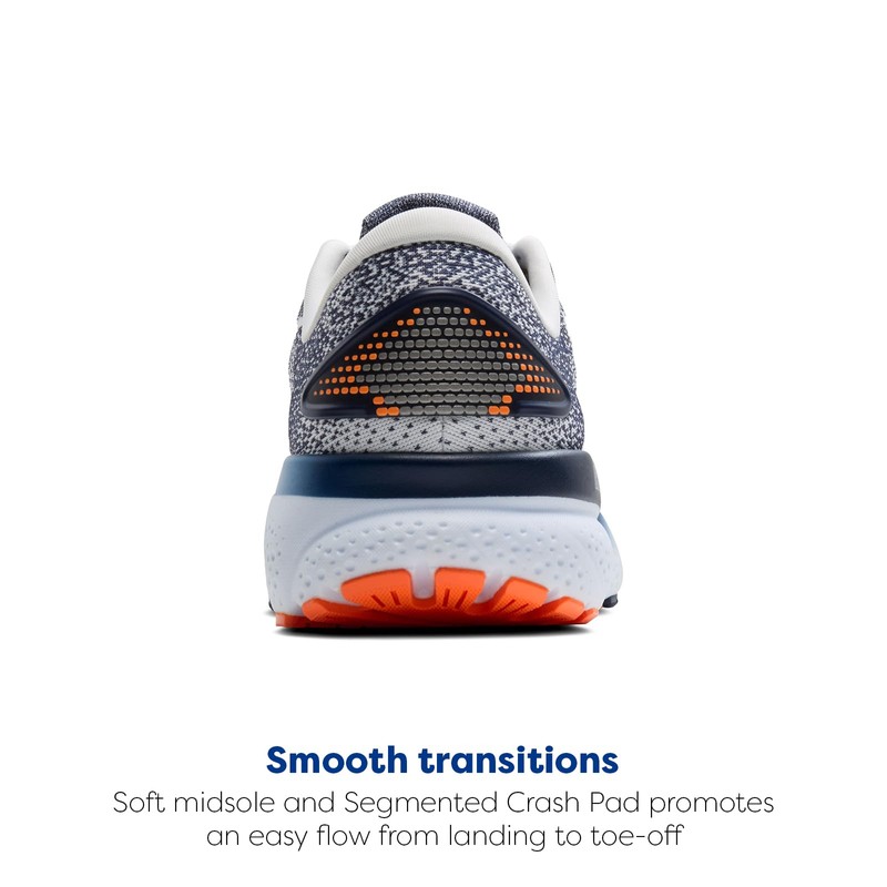Brooks Brooks Men's Ghost 16 Neutral Running Shoe - White/Peacoat/Orange - 7.5 Medium