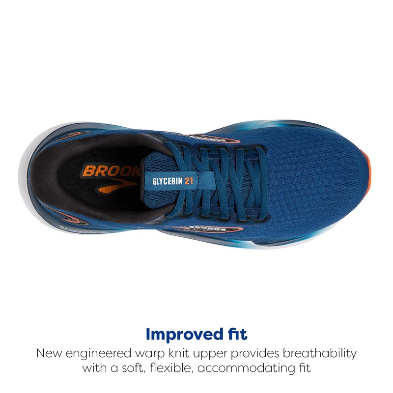Brooks Men’s Glycerin 21 Neutral Running Shoe - Blue Opal/Black/Nasturtium - 13 Wide