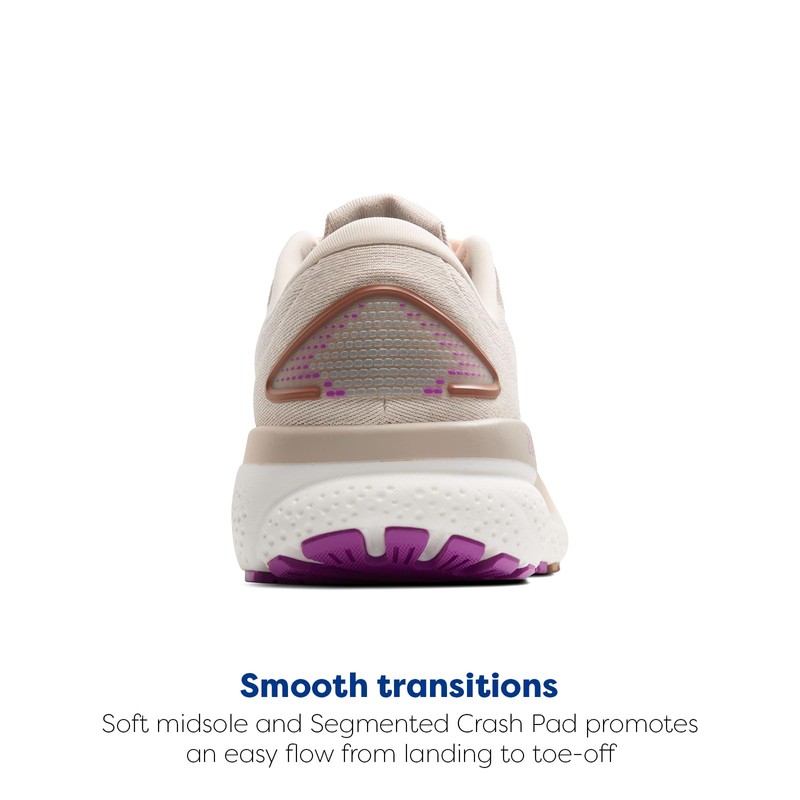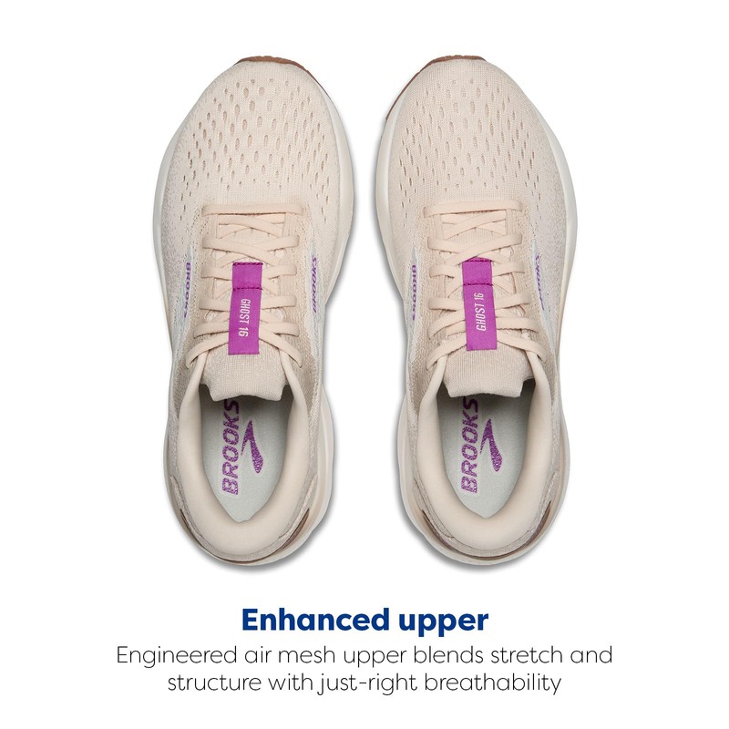 Brooks Women’s Ghost 16 Neutral Running Shoe - Almond Peach/Coconut/Purple - 7 Medium