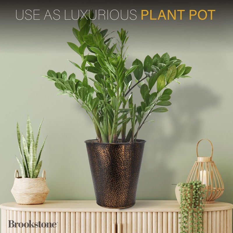 BROOKSTONE, Decorative Metallic Bronze Waste Basket Trash Can - Stylish and Functional Addition to Any Room