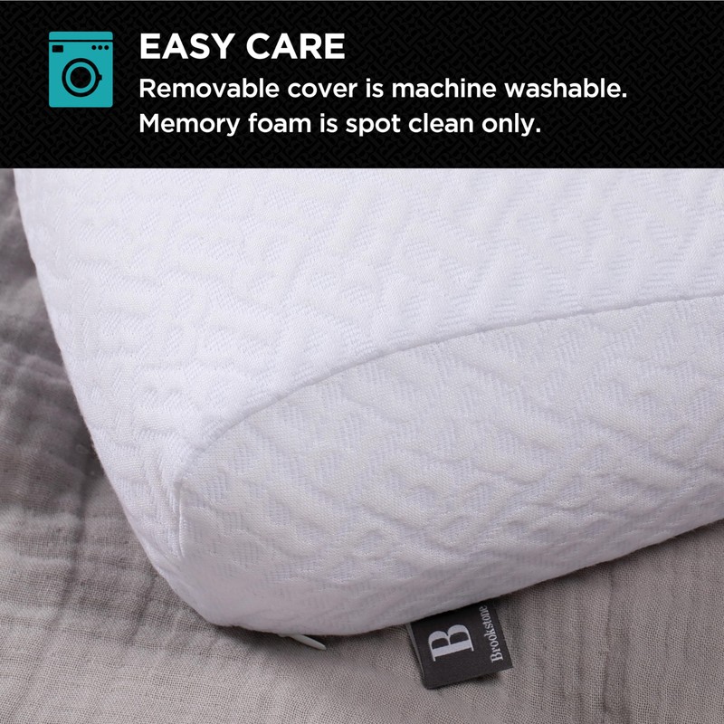 Brookstone Memory Foam Pillow - Supportive Pillows Adapt to Body's Curves for Optimal Comfort, Pressure Relief - for Side, Back & Stomach Sleepers - Removable, Washable Cover