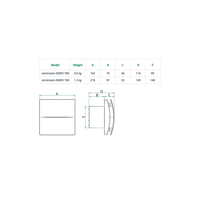 - Installation Options: The Airstream DMEV 100 CF can be mounted on walls, ceilings, or windows, offering flexibility in installation. Whether you're installing in a new build or as part of a renovation project, this unit is adaptable to different setups, including direct outdoor exhaust or ducted systems.
