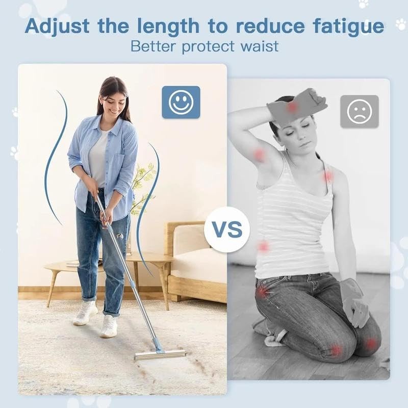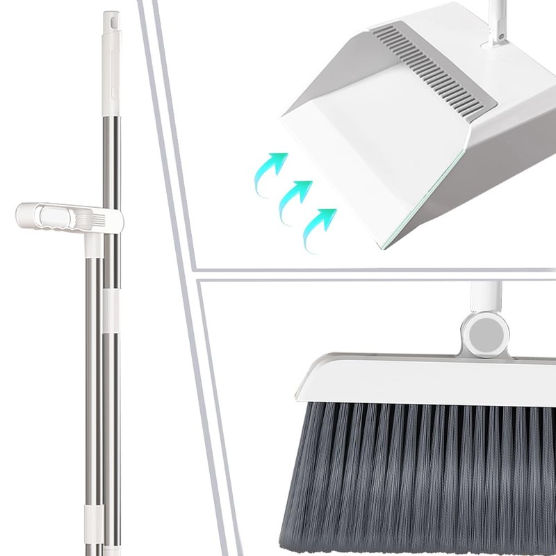 - Adjustable Long Handle for Comfort: The adjustable pole design allows the broom and dustpan to extend from 38.18 to 54.18 inches, catering to various heights. Stand upright while cleaning for a more comfortable, strain-free experience—no more bending!