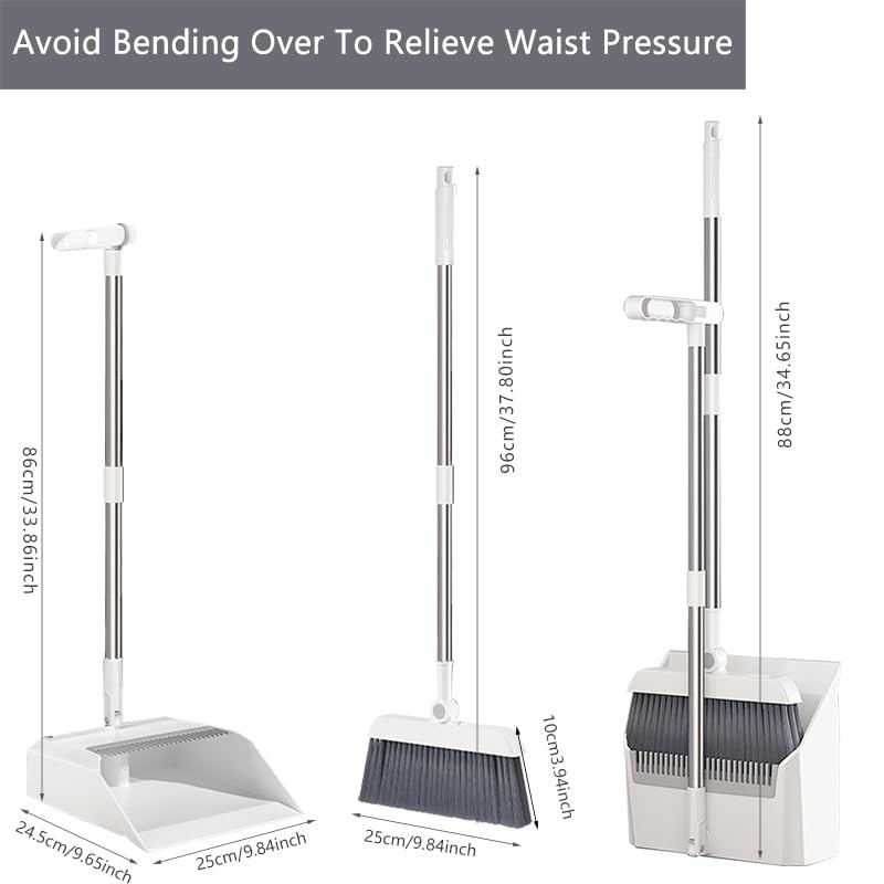 - Space-Saving and Easy Storage: Designed with a clip-on feature, the broom and dustpan set stands upright when not in use, saving space. It can be hung on walls or stored neatly in tight spaces, keeping your home organized and tidy.