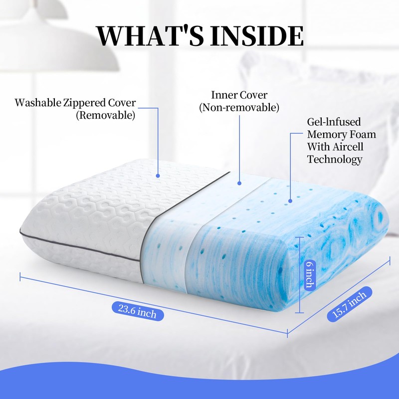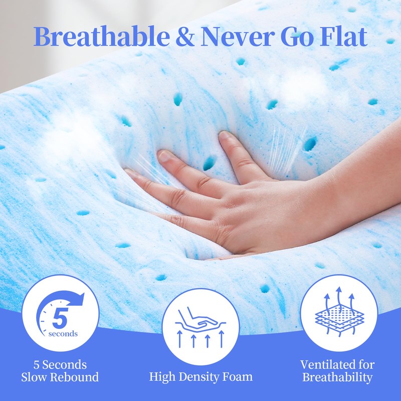 - Highly Breathable: This foam bed pillow features gel infusion and open-cell technology, which ensures proper airflow throughout the night.