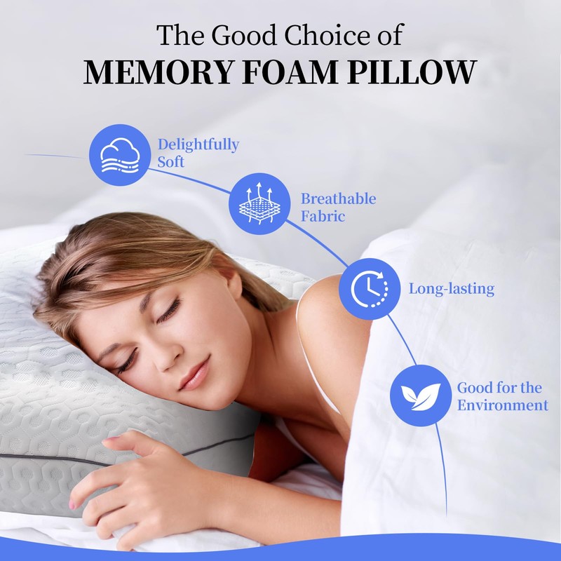 - Ergonomic Design: This memory foam pillow is contoured to provide optimal support and alignment for your head, neck, and shoulders.
