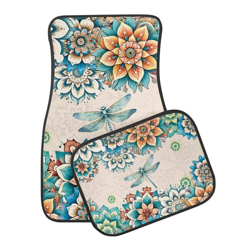 Brosoneto Boho Flower Car Floor Mats All Weather for 95% Sedan SUV Car - All Weather Protection - Easy to Clean Anti-Slip