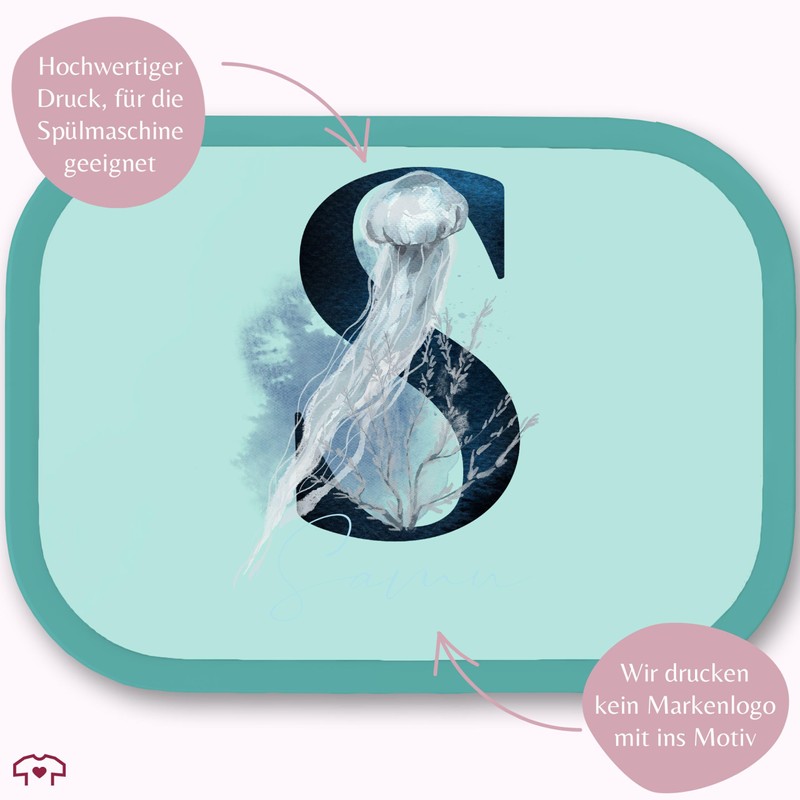 Brotdose Kinder Campus für Mepal - Buchstabe - Unterwasserwelt Initialen mit Name personalisiert I Anfangsbuchstabe mit Meerestieren I Meerliebhaber Geschenk - 750 ml - Türkis - buchstaben