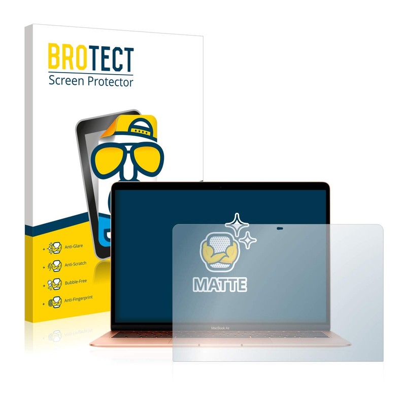 The BROTECT matte screen protector compatible with Apple MacBook Air 13.3 inch 2020 reduces glare and preserves the touch screen sensitivity of your device. Thanks to the anti-fingerprint coating, dirt and fingerprints can be easily removed. The flexible adhesive layer guarantees easy and bubble-free installation. Made by our expert team in Germany. Easy installation, anti-reflective film, scratch-resistant, case friendly and anti-fingerprint. BROTECT anti-glare film compatible with Apple MacBook Air 13.3 inch 2020 (1 x display).
