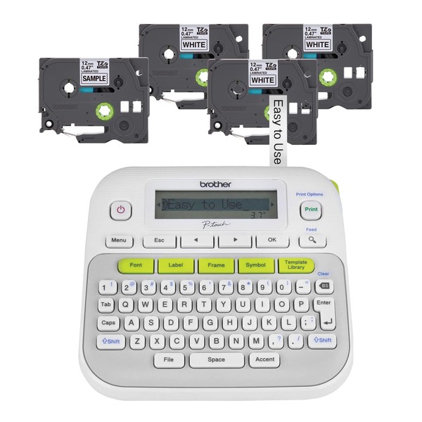 Brother P-Touch, PTD210, Easy-to-Use Label Maker Bundle (4 Label Tapes Included), White, Small