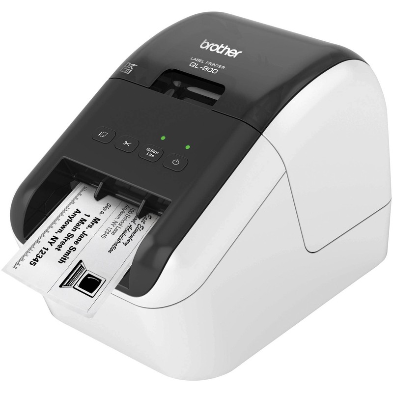 - In the Box: Brother QL-800 High-Speed Professional Label Printer; Software, USB Cable, Power Cord, Quick Setup Guide, Documentation, Starter rolls: DK-1201 Die-cut Standard Address Labels (100 labels), plus DK-2251 2.4" (62mm) Continuous Length Black/Red on White Paper Tape 16.4 ft. (5m).