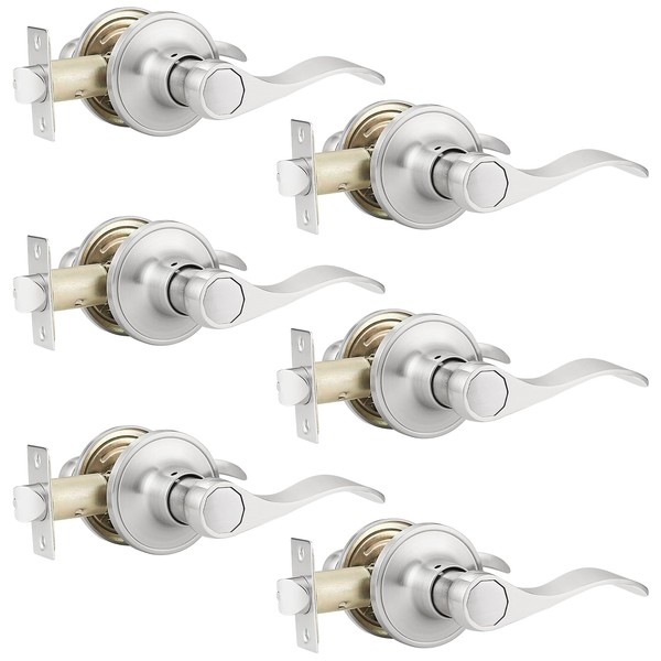 Brotima 6 Pack No Lock Passage Door Lever Handle, Reversible Door Handles Without Locking for Right/Left Handed Door, Satin Nickel Wave Style Lever Set for Interior/Exterior Use