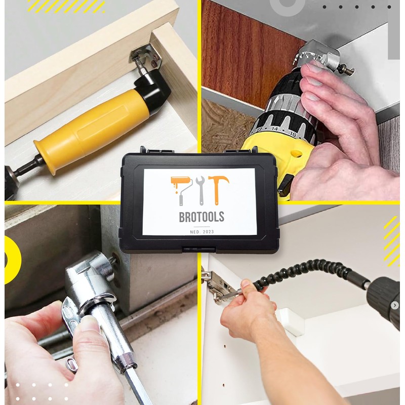 Brotools - Right Angle Drill Attachment set with Flexible Drill Bit Extension and Transport Box - Drill Attachments with 90 Degree Drill Attachment and Right Angle Screwdriver - Angle Drill Extension