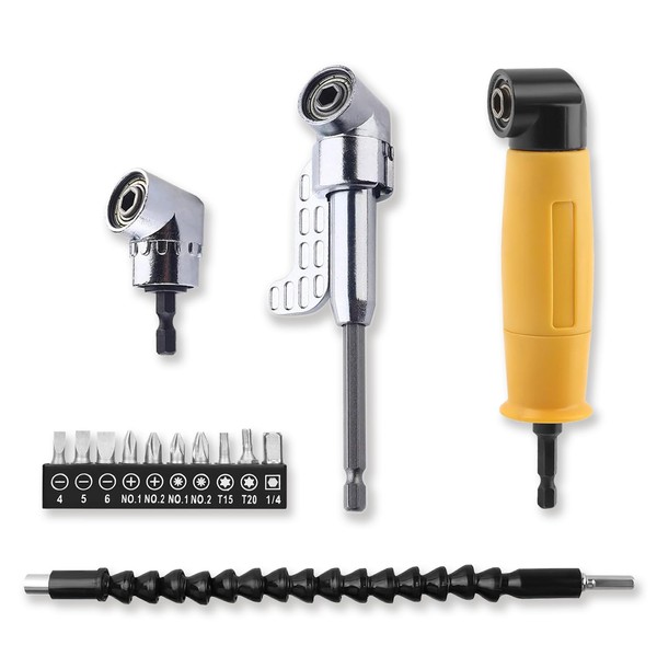 - 105-DEGREE RIGHT ANGLE ATTACHMENT: Includes 2x 105-degree right-angle drill attachment. One piece features a removable handle, extending the power and reach of your cordless screwdriver. This Drill Angle Adapter is perfect for accessing areas too small for standard drills