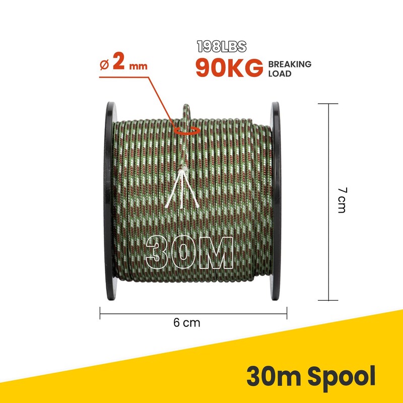 • This cord is 30M (100ft) or 50M (164ft) in length, and 2mm in diameter, long enough to cut and truss up. And it is available in a variety of color selections.