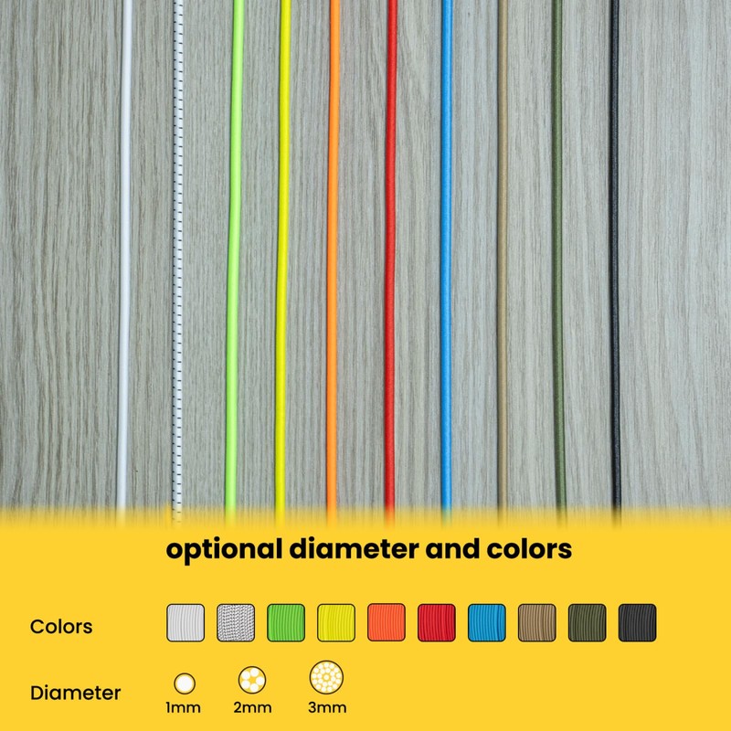 - 【Specifications & Spool】Our elastic strings are available with different lengths, colours and thicknesses so that you need to choose the most appropriate one for your project. For this elastic thread, it comes in a size of 1mm x 10m, and is army green. Spool packaging makes the stretchy cord to be portable and flexible for various applications and prevents ropes from cluttering the workspace.