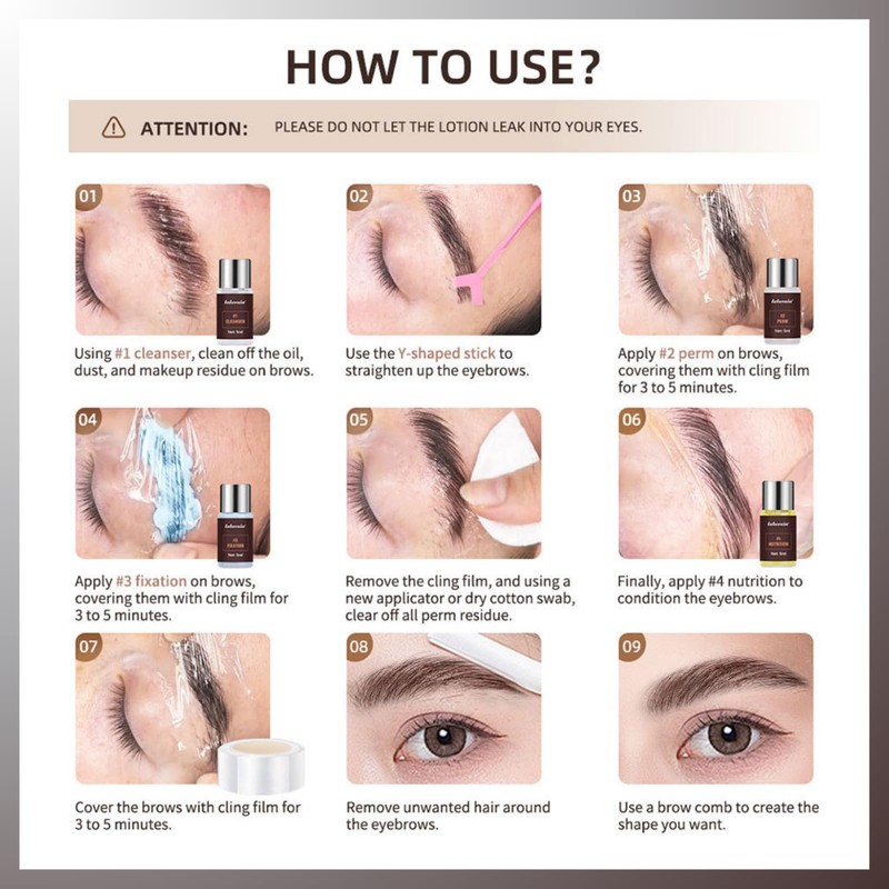 - Easy At-Home Application: This eyebrow lamination kit includes clear, step-by-step instructions, making it simple to use at home without the need for professional assistance.The applicator tools and precise brow perm formula make the process straightforward and accessible, so you can achieve salon-quality brows without leaving your home.