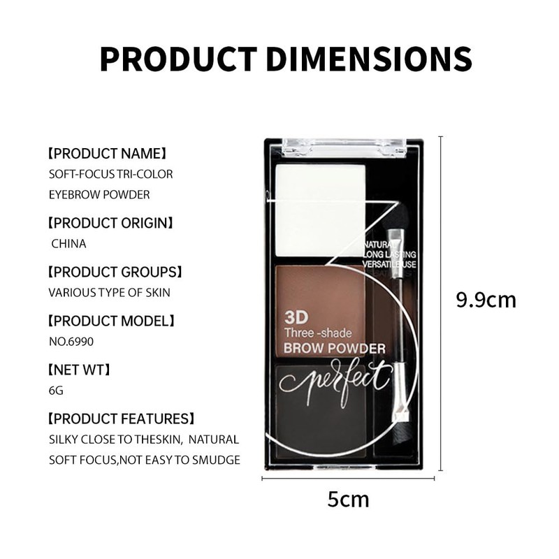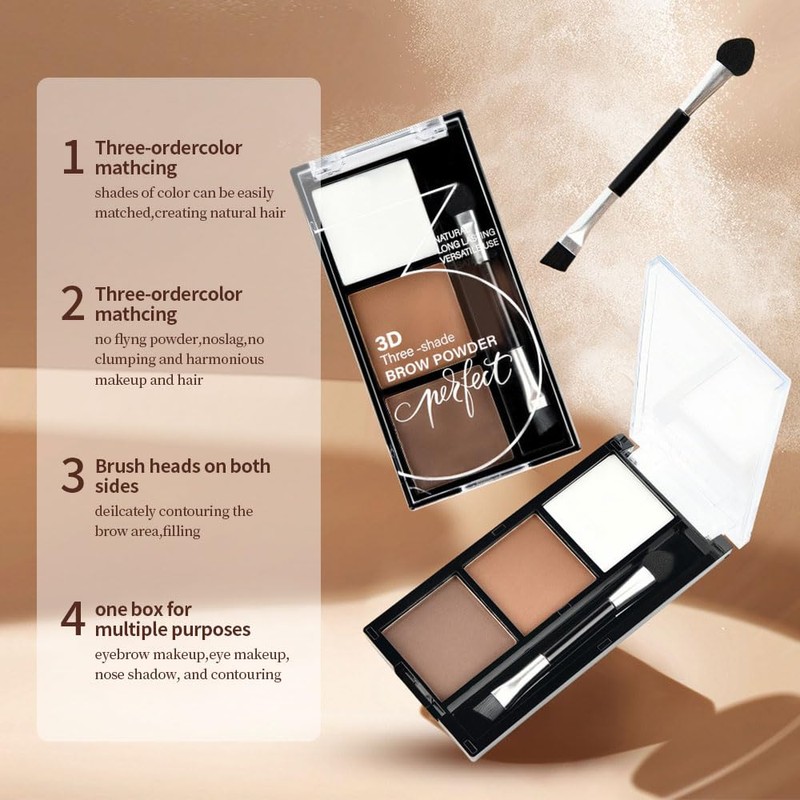 - 3 Color Matching:3 different color-coordinated eyebrow powder palettes, each with three separate colors to work with a variety of hair colors.