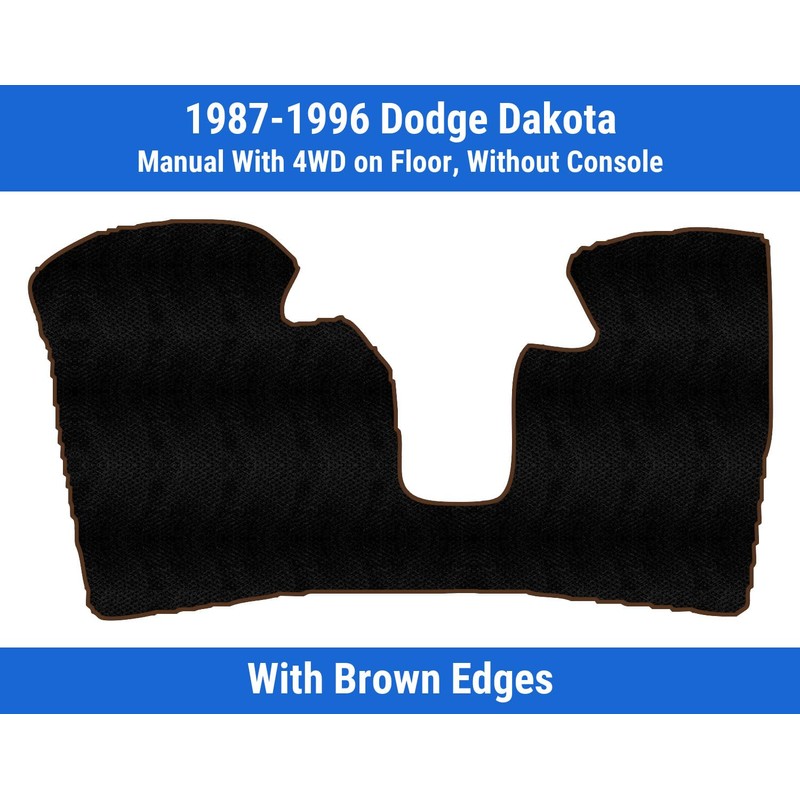 Brown Edge Custom Fit Front Carpet Floor Mat, Black, Compatible with Dodge Dakota Manual with 4WD on Floor, Without Console 1996 1995 1994 1993 1992 1991 1990 1989 1988 1987
