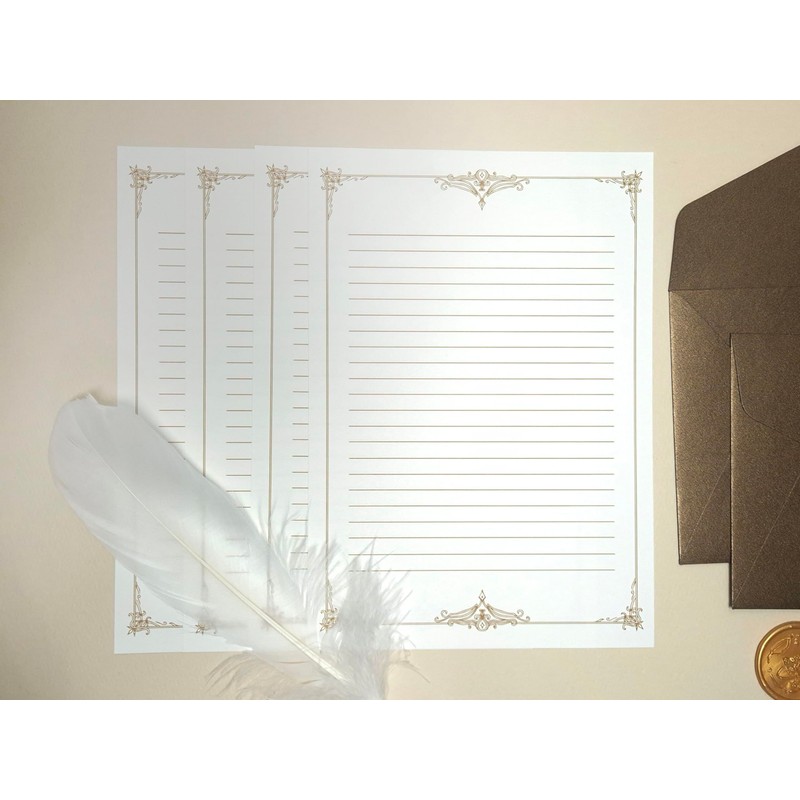 - Lined Writing Paper: Comes with 4 sheets of lined writing paper featuring ornate borders for a classic, refined look.