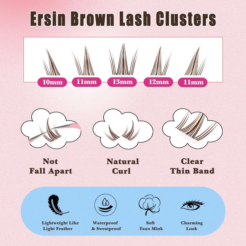 • 100 pieces brown 10-13 mm mixed DIY individual eyelashes: brown eyelash extensions are the best choice for DIY eyelash extensions at home. 5 times faster and easier than individual eyelash extensions. You can choose from a variety of styles. For the same price you get more lashes and more uses.