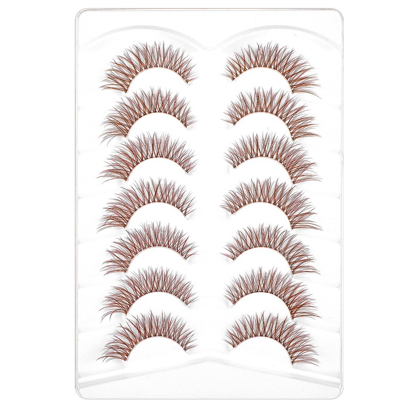 Brown False Eyelashes, ValueBargain 7 Pairs Natural Curl Brown False Eyelashes, Cat Eye Style for Everyday Glamour, Handcrafted Faux Mink Quality, Reusable & Long-Lasting, Suitable for All Eye Shapes