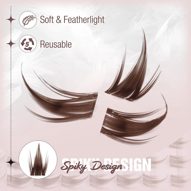 - Brown Lash Clusters for Manga Eyelash Extensions: Achieve trendy manga lash extensions with our anime cluster lashes. The feather-light spiky lashes clusters create dimensional anime-inspired volume while the rich brown hue blends naturally with light hair tones – delivering editorial edge without salon appointments.