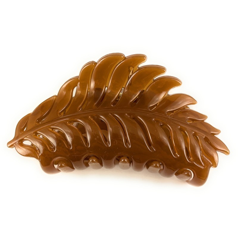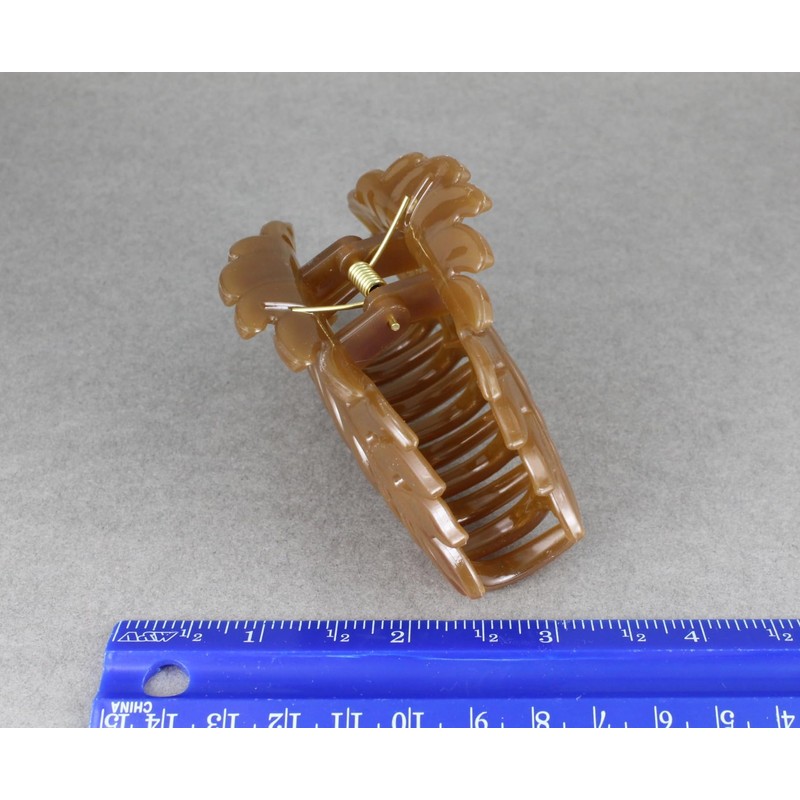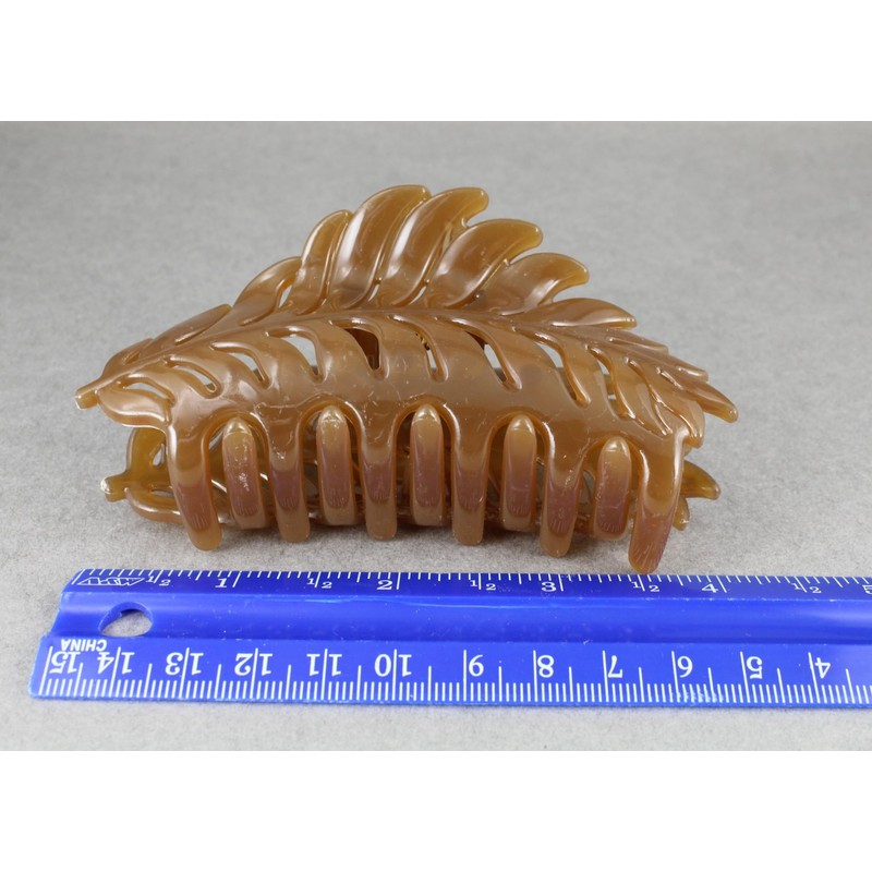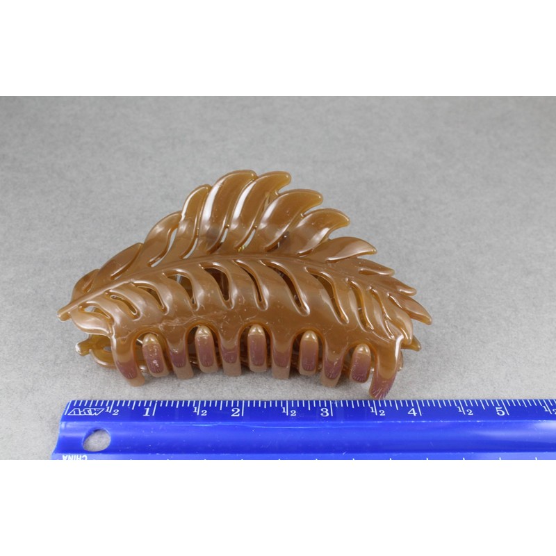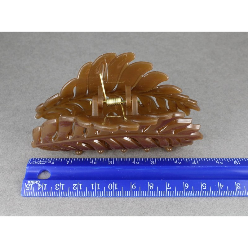 Brown leaf hair clip claw butterfly clamp 4 inches long open cut out leaves vine shiny plastic