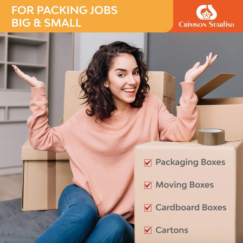 • MASTERFULLY MULTI-PURPOSE: Not only does our brown packing tape 6 roll pack have unbeaten value & longevity, it is ideal for a variety of usages. Our brilliant brown tape is great for sealing boxes and parcels for shipping, for house & office moves and general storage. Crimson Starfish's brown packing tape is expediently multipurpose and will cater for all your taping requirements.