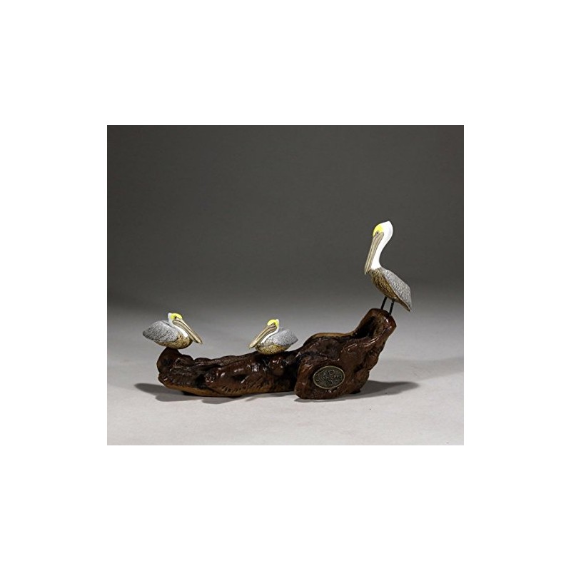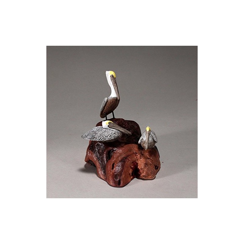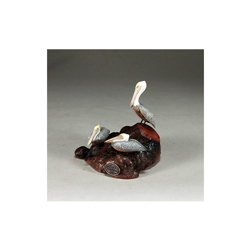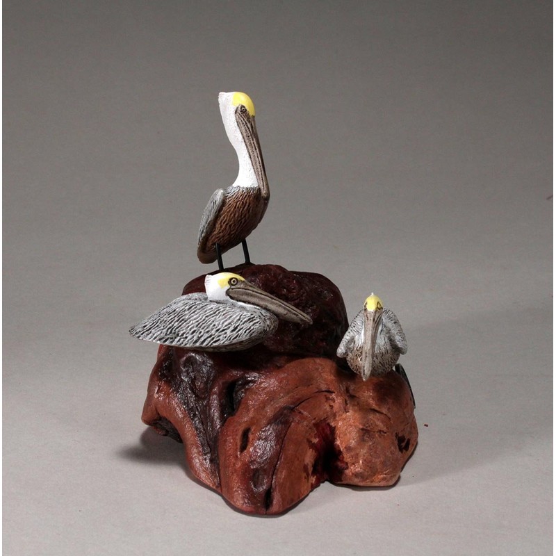 Brown Pelican Trio by John Perry Sculpture on burlwood base 5 in Long Statue Decor
