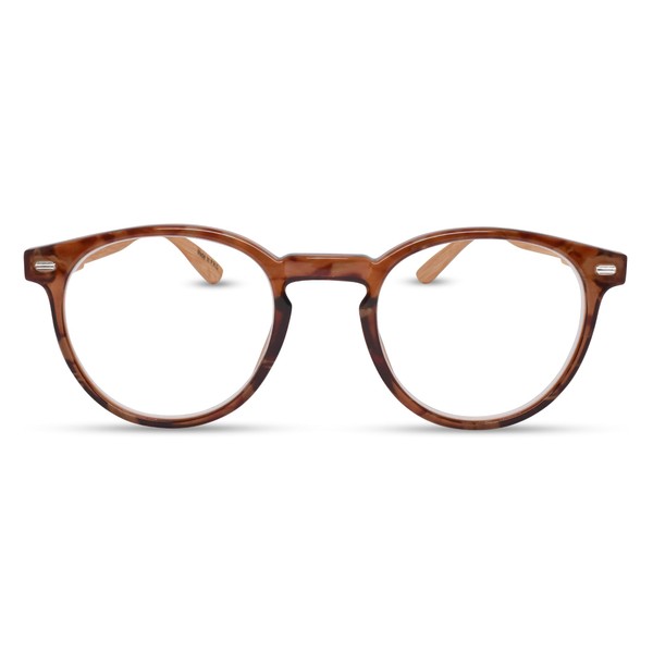 Brown Retro Bamboo Frame Round Reading Glasses for Women with Sturdy Made - Flexible Spring Hinge Readers for Women - Trendy for all Face Shapes High End Fashion Reader Glasses - Cheaters 1.0