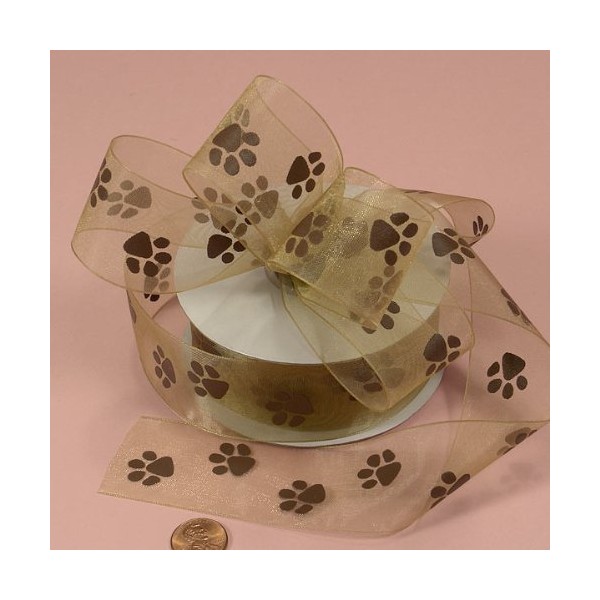 Brown Sheer Paw Prints Ribbon, 1-1/2" X 25Yd