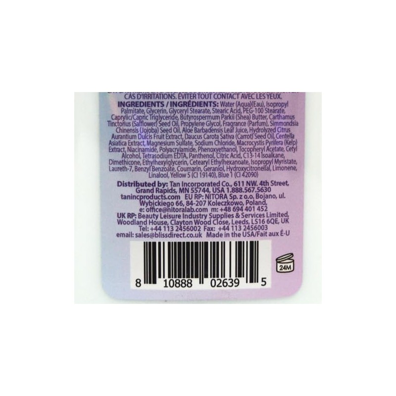 - Carrot Oil - Shea Butter Blend - Sea Salt - Tiger Grass - Aloe - Jojoba and Safflower Seed Oil