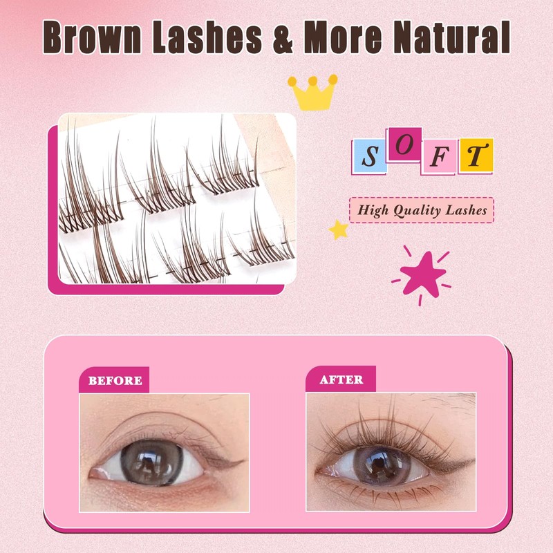 Brown Wimpern Extensions Set 100Pcs 8-12mm Mixed Clear Band Künstliche Wimpern Cluster Lashes Extension Natürlicher Look Lash Clusters Individuelle Wimpern Extensions(KQY)