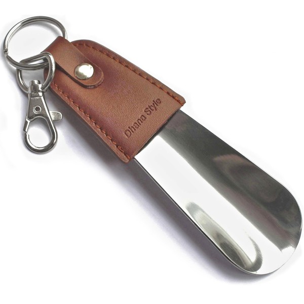 タブ付 ステンレス 短ヘラ 靴べら ポータブル シューホーン シューケア キーホルダー (Brown)