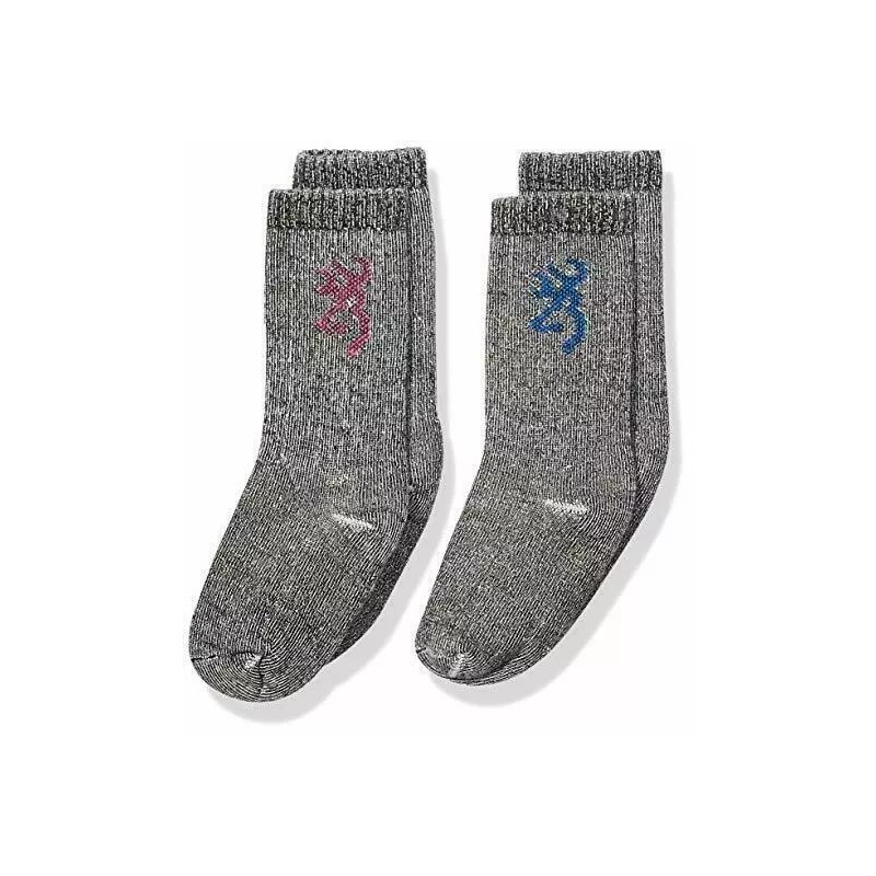 Browning (2) Pair Browning Youth Gray Wool Blend Crew Socks Small 6-1 1/2 Brand New Pack