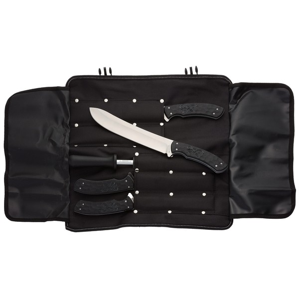 - Includes rugged nylon knife roll with large interior flaps to hold knives in place