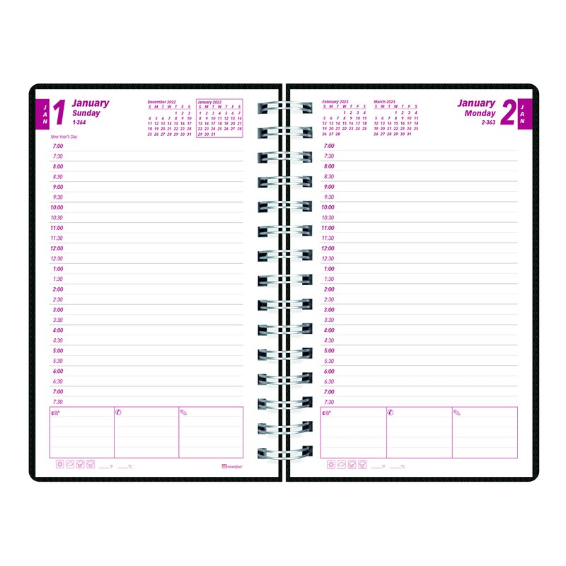 - DuraFlex daily/monthly planner with day-per-page format and appointment schedule from 7:00 a.m. to 7:30 p.m. in half-hour intervals, for full week. Monthly planner before each month