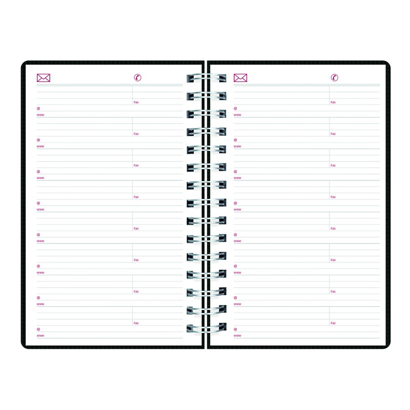 - Twin-wire binding with heavy-duty, textured, two-piece poly cover in Black