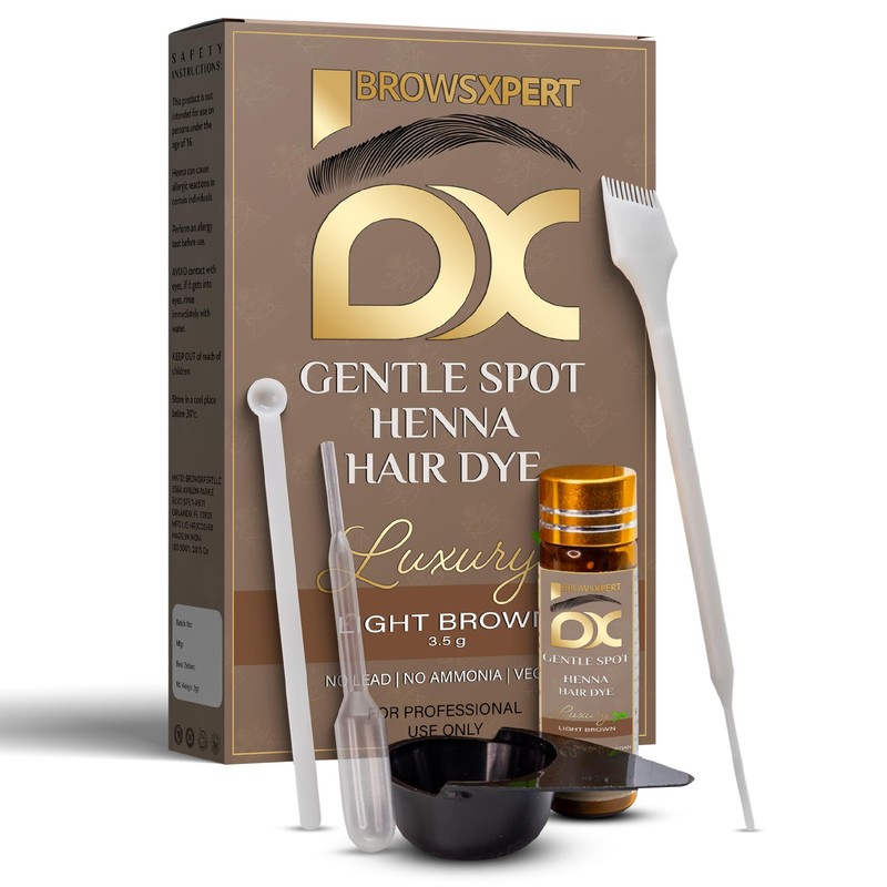 BROWSXPERT Gentle Spot Henna Hair Dye With Mixing Dish, Exclusive Stir and Brush + Follow Instructions | 3.5g | Light Brown