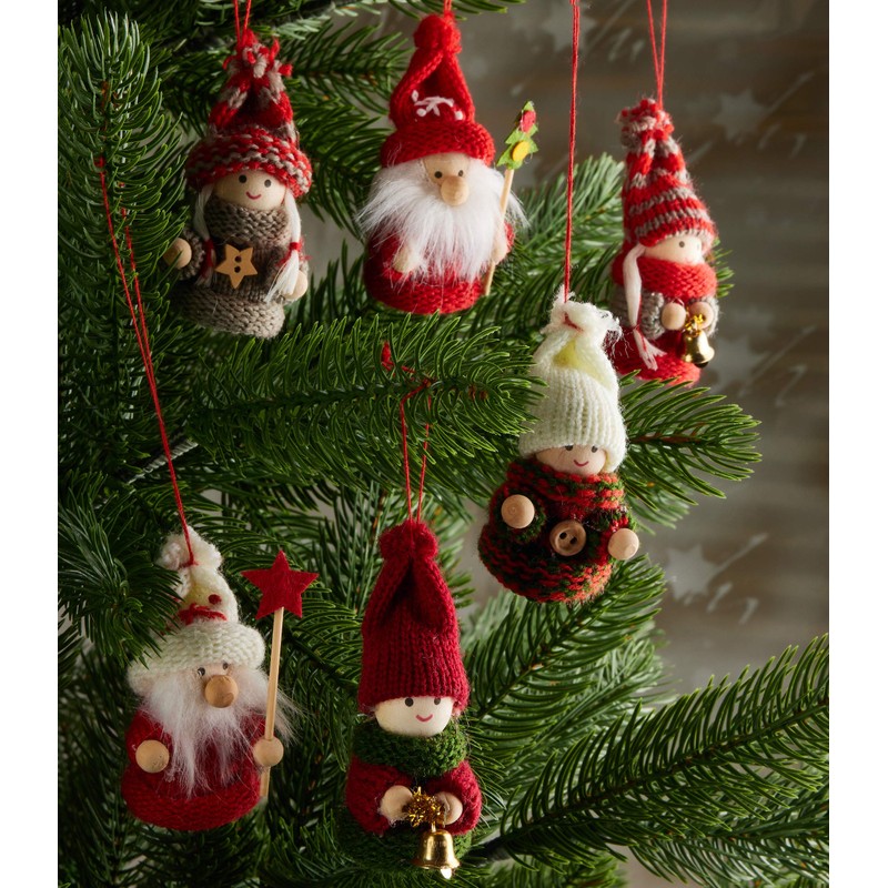 BRUBAKER 6-Piece Set Knitted Christmas Tree Hanging Dolls - Wood & Knit - Decoration - Ornaments