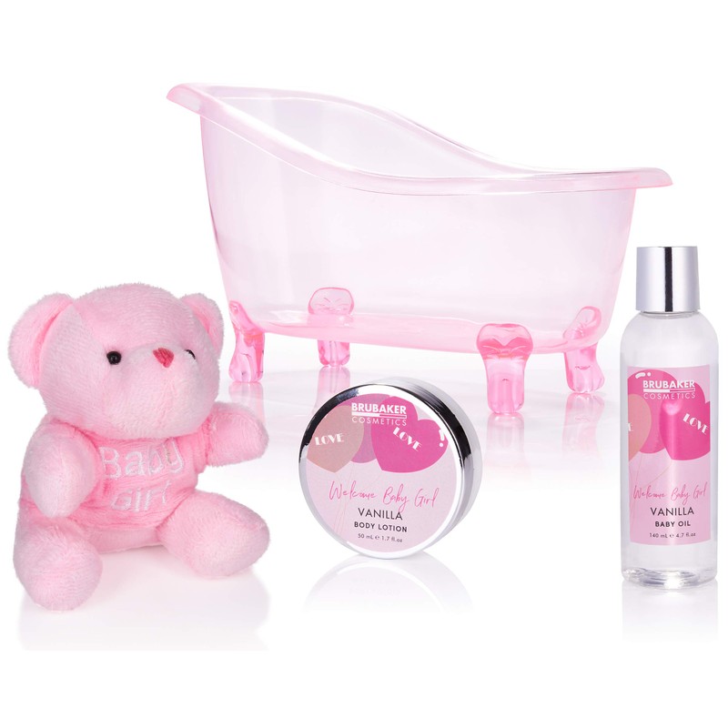 Brubaker Cosmetics 7-Piece Welcome Set with Baby Care Series and Plush Teddy in Tub.