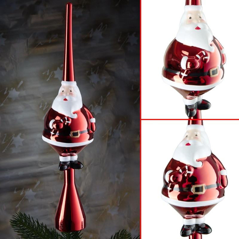 BRUBAKER Christmas Tree Topper Thick Santa - Shiny Christmas Tree Topper - 35 cm Large Tree Topper Santa Claus - Christmas Tree Topper - Christmas Tree Decoration Christmas - Christmas Tree Topper -